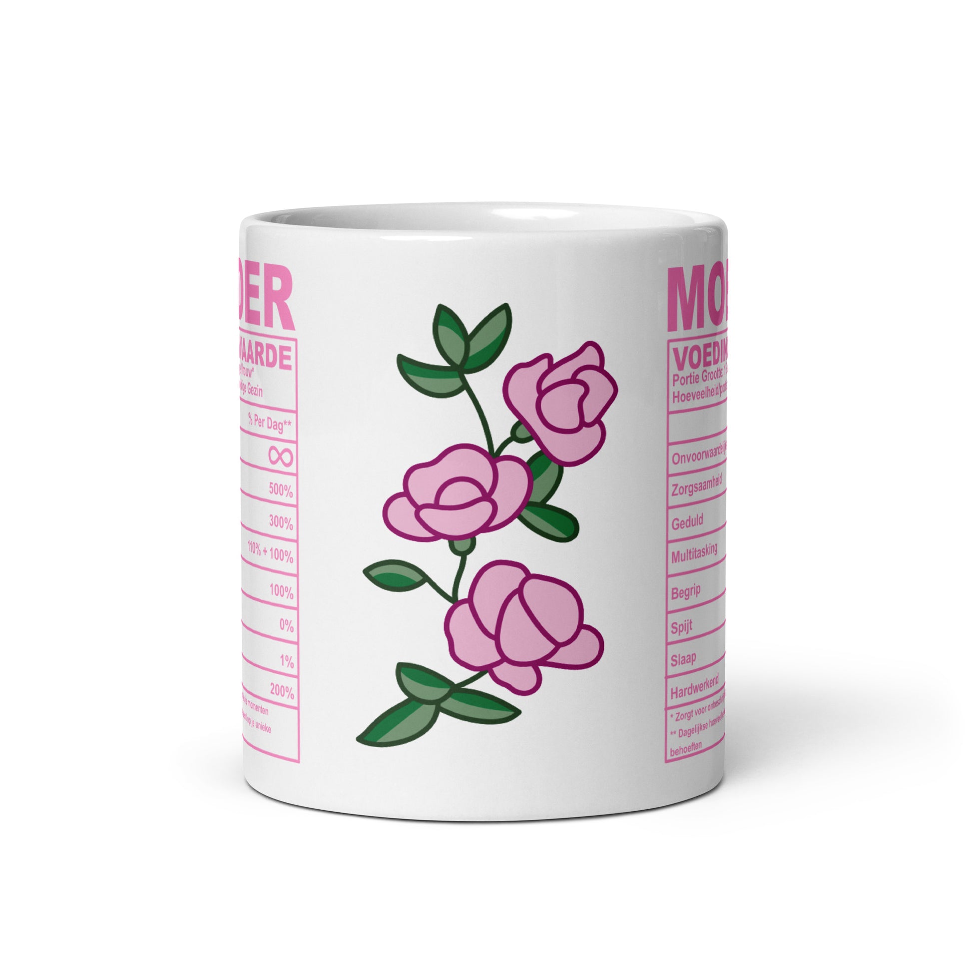 Geef haar ochtend een flinke portie waardering met onze **"Moeder Voedingswaarden" mok**! Ontworpen als een voedingswaardelabel, maar dan met een knipoog en een warm hart. Deze mok laat precies zien waar moeders Γ©cht van gemaakt zijn.