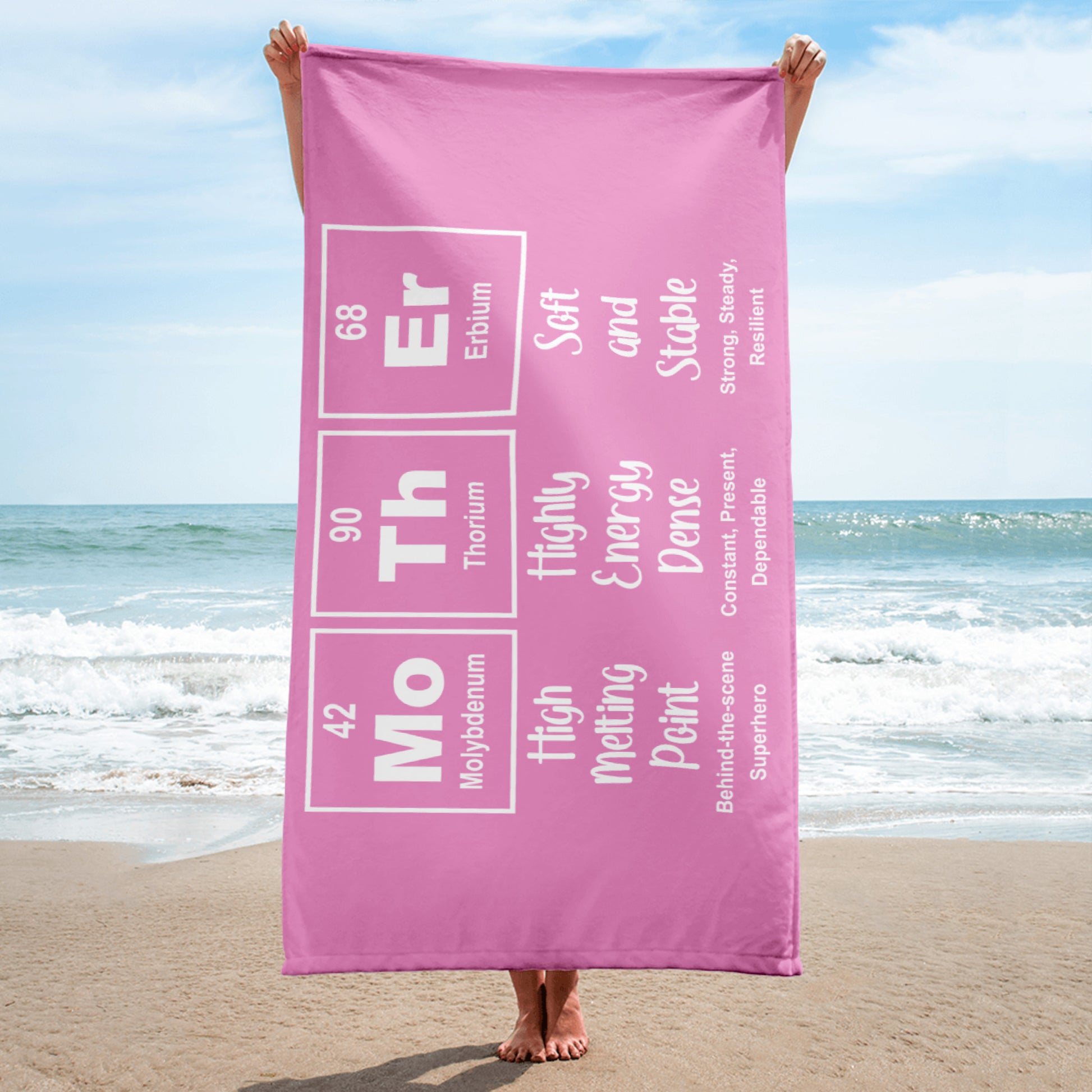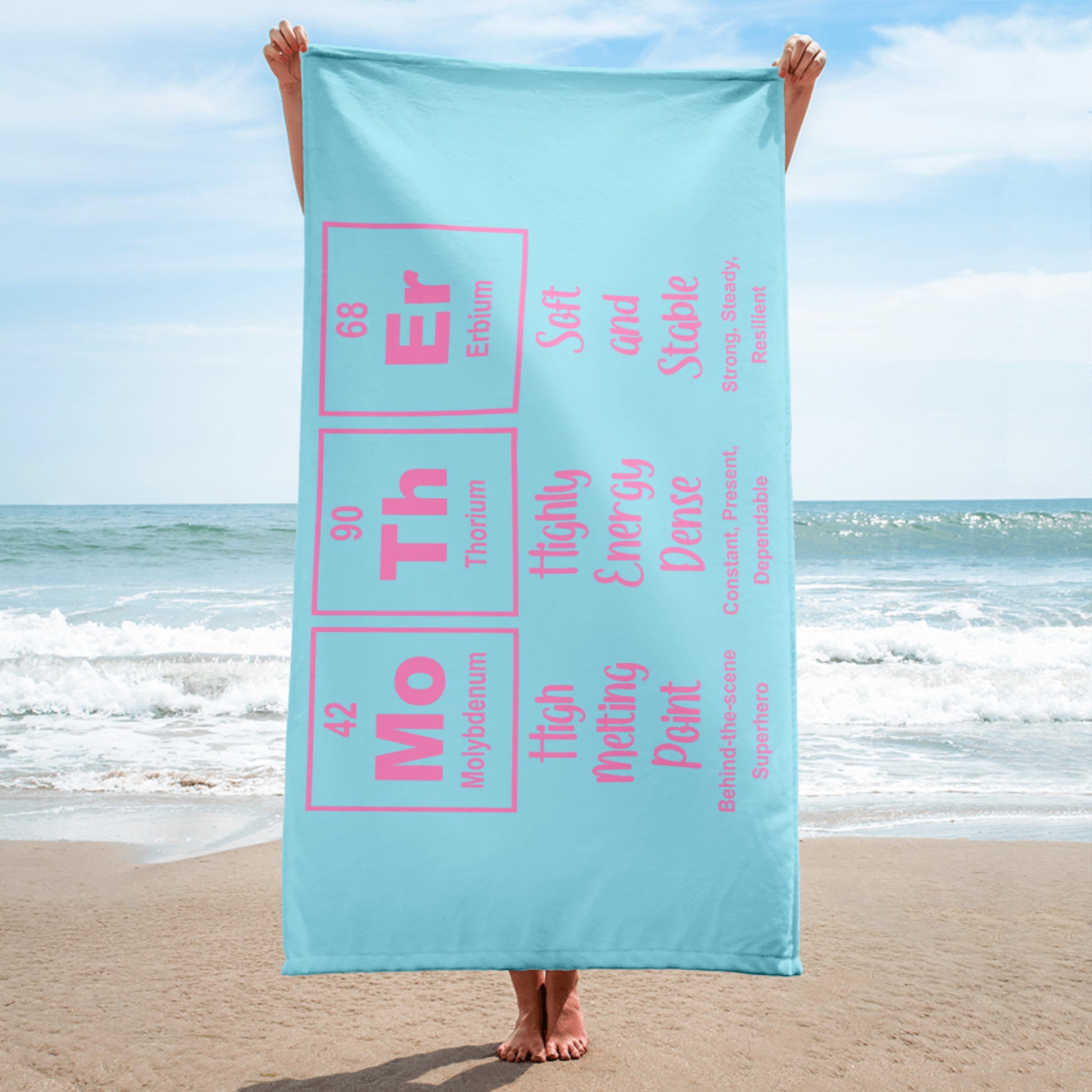 - Oversized, vibrant towel with the "MoThEr" periodic table design